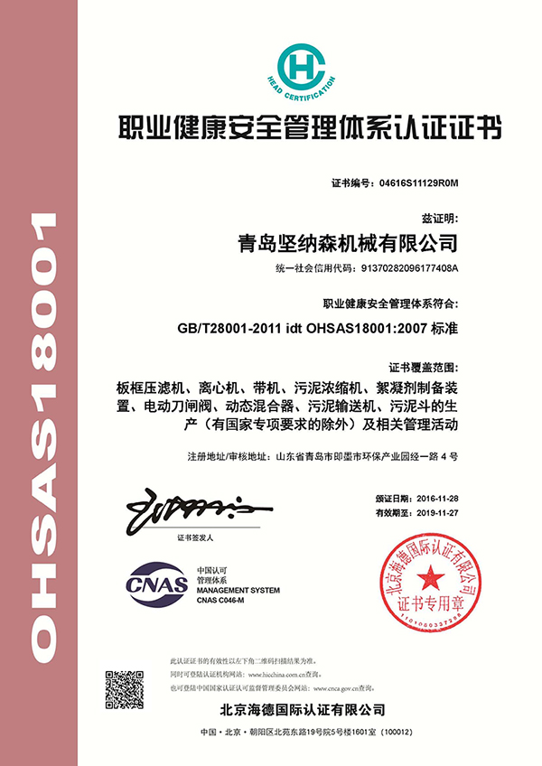 近日我公司獲得了由北京海德國(guó)際認(rèn)證中心頒發(fā)的環(huán)境和職業(yè)健康安全管理體系認(rèn)證證書,標(biāo)志著我公司三個(gè)標(biāo)準(zhǔn)一體化管理體系工作取得了階段性的成果,充分表明我公司具有穩(wěn)定的質(zhì)量、環(huán)境、職業(yè)健康安全管理體系保證能力。